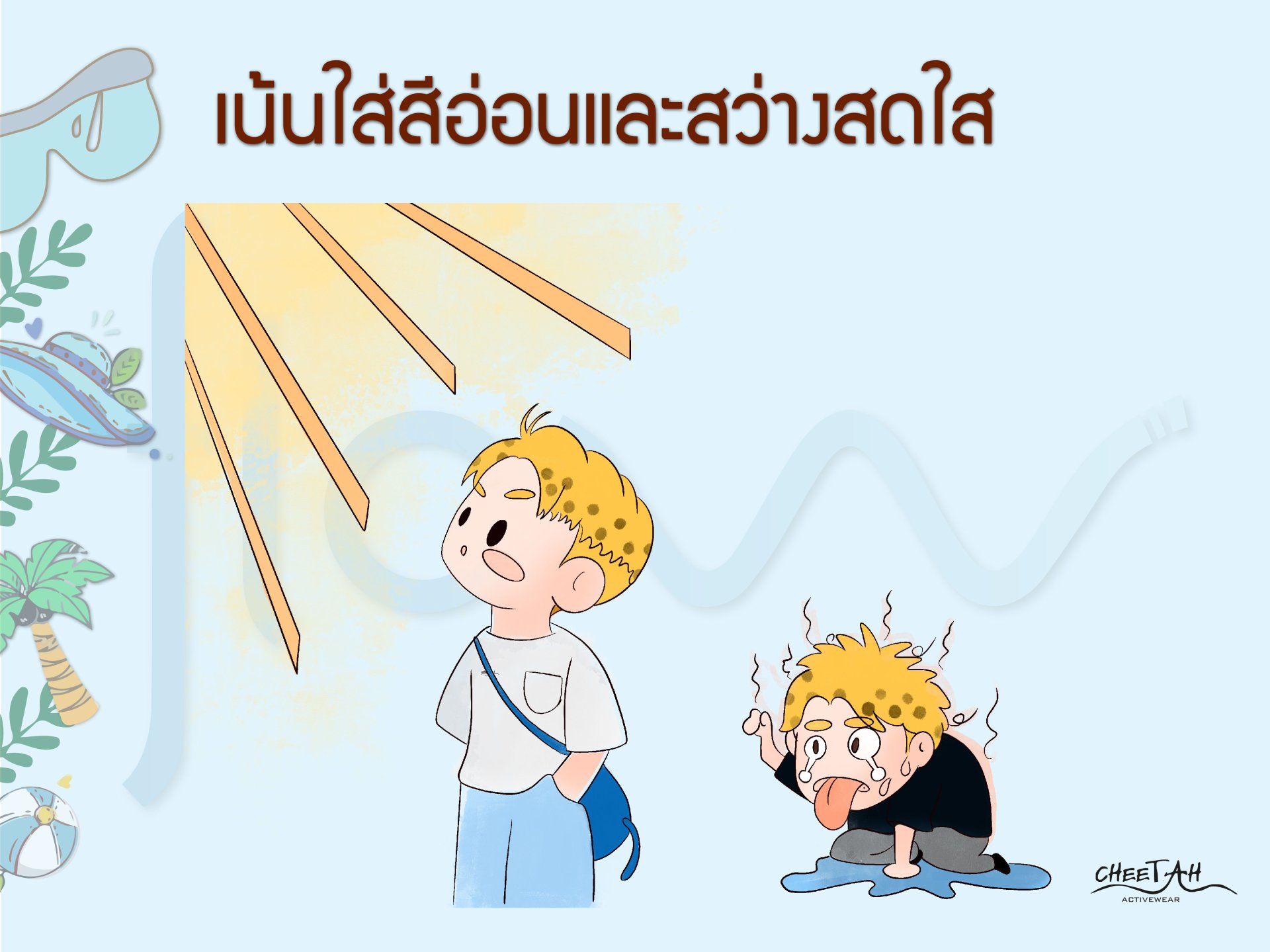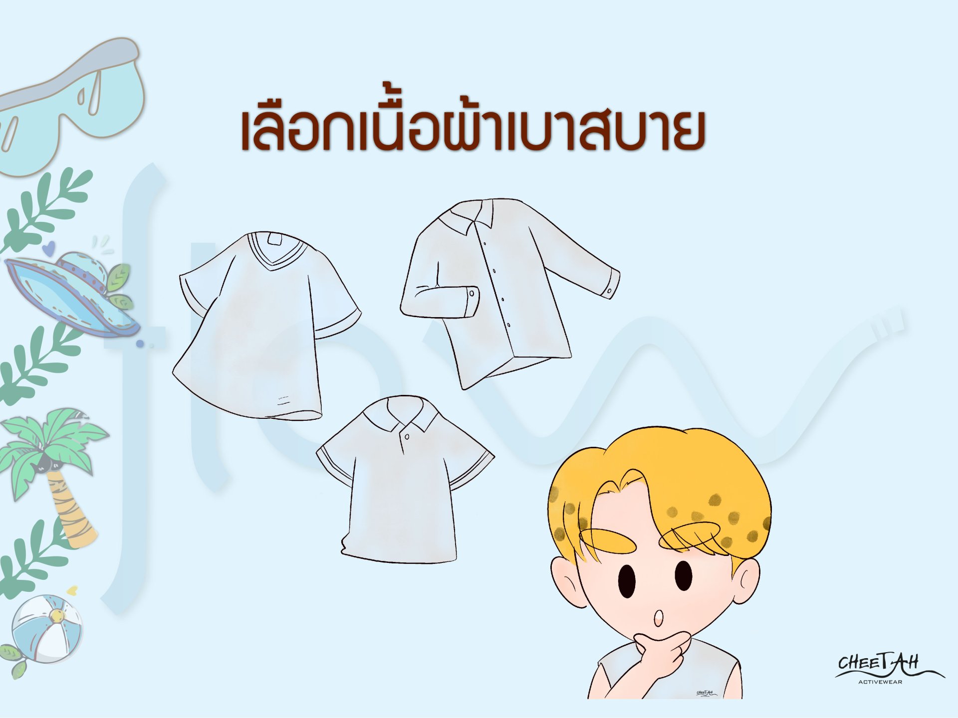 เป็นเรื่องธรรมดาสามัญมากๆ ที่หลายคนคงเตรียมครีมกันแดด หมวก หรือร่มยูวีเพื่อช่วยชีวิตตัวเองในหน้าร้อนเอาไว้ แต่อีกหนึ่งสิ่งที่ใกล้ตัวเราและสามารถช่วยเราให้สู้กับความร้อนอบอ้าวที่กำลังจะมาถึง ก็คือเสื้อผ้าที่เราใส่อยู่นี่แหละ วันนี้ Cheetah Activewear เลยจะมาแบ่งปันประสบการณ์ พร้อมชวนทุกคนมาเลือกเสื้อผ้าที่เหมาะกับหน้าร้อนที่จะถึงนี้กัน ทริคนี้ใช้ได้กับทั้งผู้หญิงและผู้ชายเลยจ้า จะมีอะไรบ้าง ไปดูกันเลย!